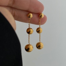 Lujo impermeable 18K PVD oro plateado cuentas pendientes largos de gota 316L pendientes de acero inoxidable joyería de moda para mujeres