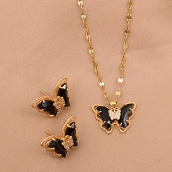 Lujo 18K chapado en oro impermeable borla mariposa colgante collar pulsera de acero inoxidable fino conjuntos de joyería de moda para mujeres