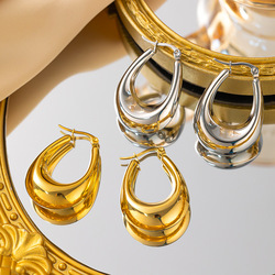 Pendientes de aro grandes chapados en oro de 18 quilates a prueba de agua gruesos huecos de lujo, pendientes de acero inoxidable 316L, joyería de moda para mujer