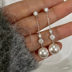 Boucles d'oreilles en plaqué argent, zircon, cristal, perle, longue chaîne, cuivre non terni, bijoux fins à la mode, boucles d'oreilles pour femmes, vente en gros en vrac